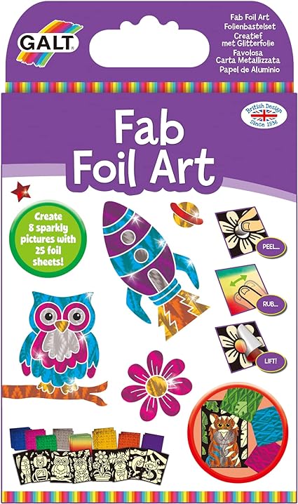 - Includes 25 foil sheets in 8 assorted colours, 8 pictures and guide