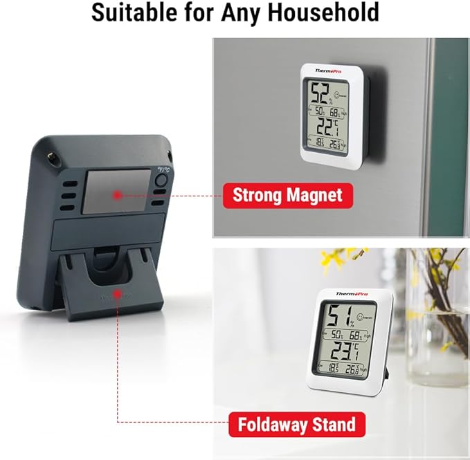 - Healthier Home: Thermometer hygrometer with temperature and humidity monitor ensures proper indoor humidity control has important skin, allergen and other health benefits